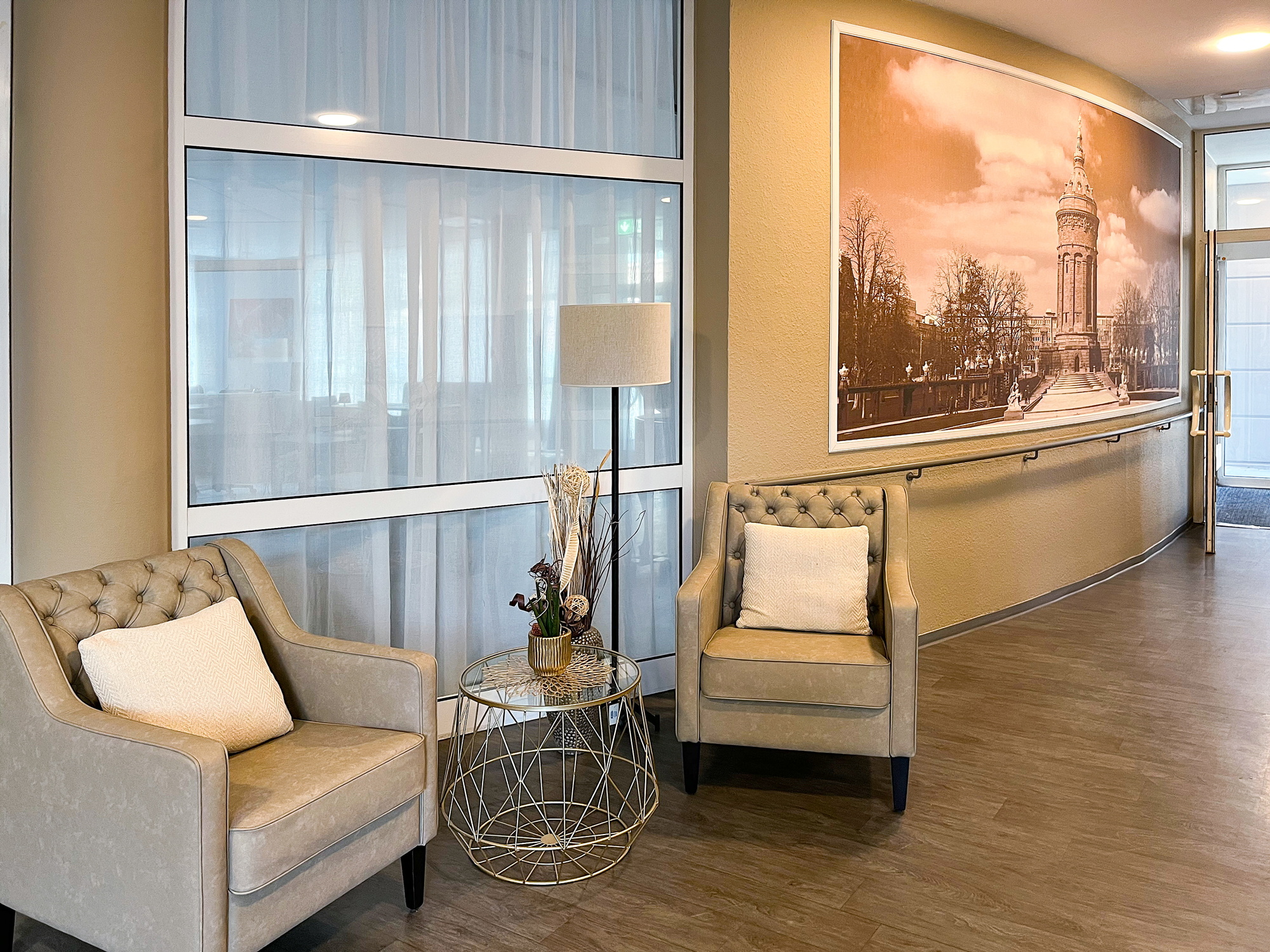 Die Residenz hält zahlreiche Annehmlichkeiten für seine Bewohner bereit: die lichtdurchflutete Cafeteria, der Fitnessraum und der barrierefreie, schön angelegte Garten – all das gehört bei uns zum Standard. Der zwei Kilometer entfernte Luisenpark zählt mit seiner prachtvollen Pflanzenwelt zu einer der schönsten Parkanlagen Europas und lädt zum Ausflug ein.