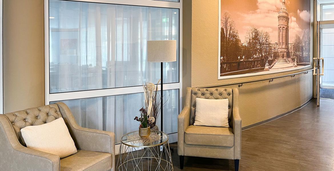 Bei uns wohnen Sie oder Ihre Lieben geborgen, mit umfangreichen Service- und ansprechenden Freizeitangeboten in einem unserer hellen Pflegezimmer. Die Zimmer verfügen teilweise über Balkon oder Terrasse und sind vollmöbliert – eigene Möbel können mitgebracht werden.